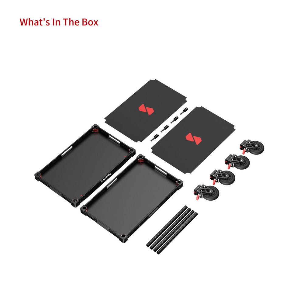 Constructed from high-grade aluminum alloy and stainless steel components, the cart supports up to 551 lb while maintaining a lightweight frame. A dual-deck design provides ample mounting space for monitors, laptops, wireless transmitters, batteries, and accessories, while integrated mounting points allow seamless expansion for professional production setups.