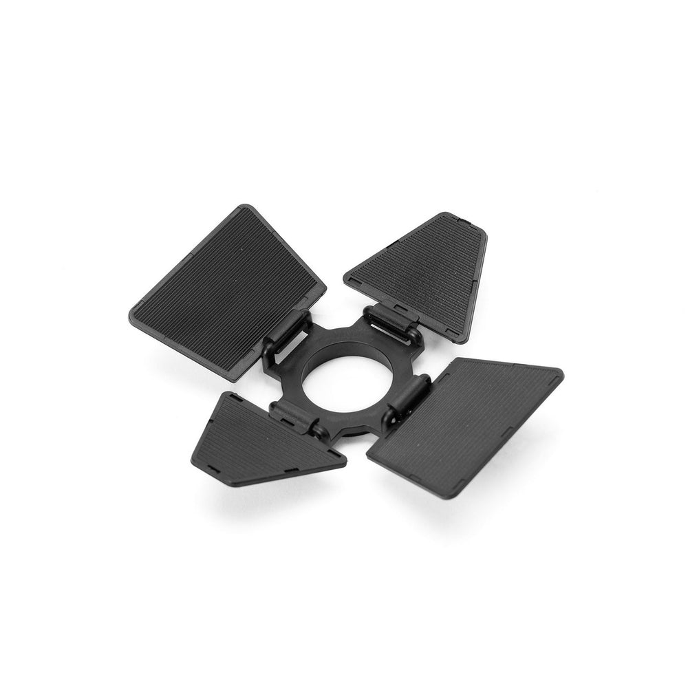 - Creative light shaping accessories: diffuser, four-leaf barndoor, and spotlight