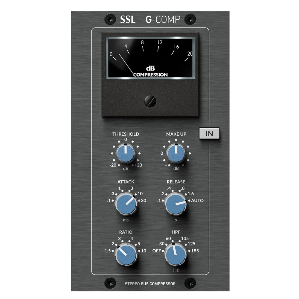 The legendary sound of the SSL Stereo Bus Compressor has been glueing mixes together for 40+ years. Often imitated but never equaled, the centre section compressor from the 1980’s Solid State Logic G-Series analogue console is an audio production legend. It is a simple unit with a simple purpose; it makes complete mixes sound bigger, with more power, punch and drive. The Stereo Bus Compressor brings cohesion and strength to your mix unlike any other processor. To this day it remains a key element of the SSL sound and has become not just a tool for production but a part of top engineers and producers creative process.