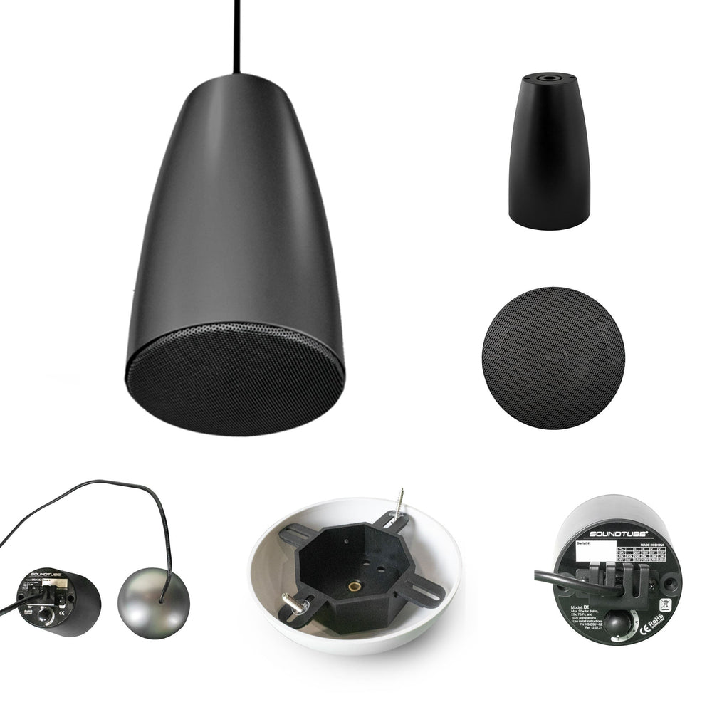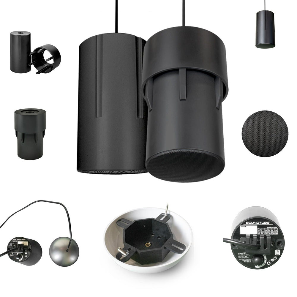 - DS31-EZ-CS-BK: 1x DS31-EZ Pendant Speaker, 1x Cylindrical Sleeve – Black, 1x Magnetic Grille – Black, 1x Surface-Mount Bracket – Black
