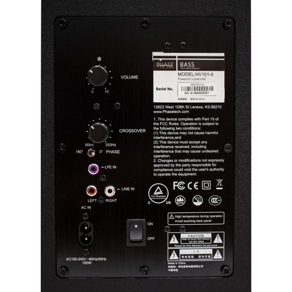The PhaseTech HV101 series delivers powerful, controlled bass with a compact footprint. Available in two variations—the standard HV101-II and the slim HV101-LP—these 10" ported subwoofers suit diverse installation needs, from dedicated home theaters to discreet under-furniture placements.
