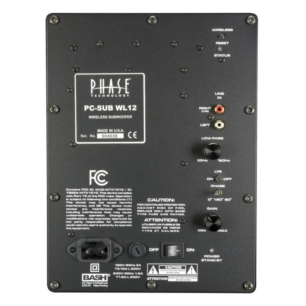 The PhaseTech PC-SUB WL12 combines a 12″ ultra-long-throw active woofer with a 12″ passive radiator for deep, room-shaking bass and up to 2.5″ peak-to-peak excursion. Stream uncompressed audio wirelessly over 2.4 GHz or use the RCA input for wired connection. A sealed MDF cabinet and variable low-pass crossover (35 Hz–120 Hz, 24 dB/octave + LFE bypass) adapt to any system.