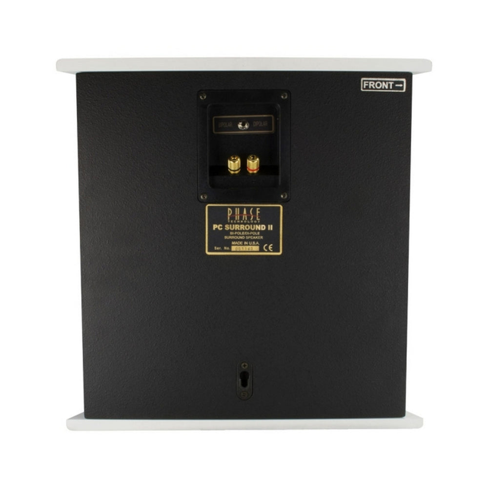 The PhaseTech PC-SURR-II is a low-profile, on-wall surround speaker offering switchable bipole/dipole modes for customizable home-theater immersion. Its sealed enclosure houses a patented 6.5″ tri-laminate Kevlar/RPF®/glass-fiber flat-piston woofer, two 4″ polypropylene midranges, and two 1″ soft-dome tweeters to deliver enveloping, articulate surround effects from 60 Hz to 22 kHz.