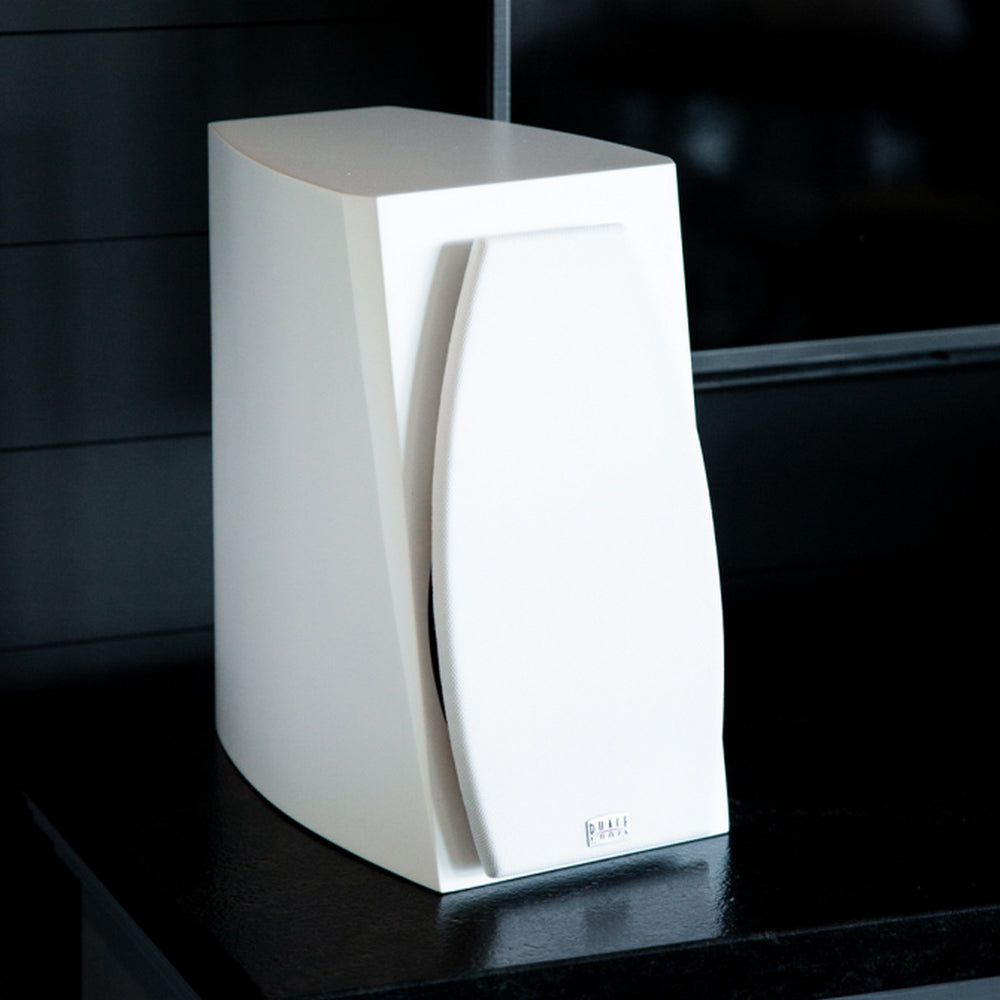 The PhaseTech PC1.5WH is a high-performance two-way bookshelf speaker featuring a patented 6.5" tri-laminate Kevlar/RPF®/glass-fiber woofer and 1" soft-dome tweeter. Its Absolute Phase™ crossover ensures coherent, wide-area dispersion—ideal for stereo listening or home theater surrounds. Finished in modern white, it complements contemporary interiors.