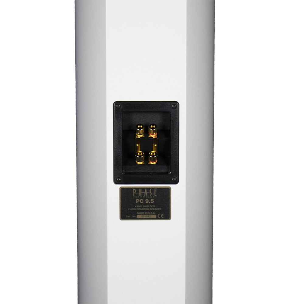 Available in Gloss Black or Matte White, the PC9.5’s elegantly curved cabinet and magnetic cloth grille blend into any décor. Gold-plated binding posts and ported enclosure ensure rock-solid connections and extended bass down to 28 Hz.