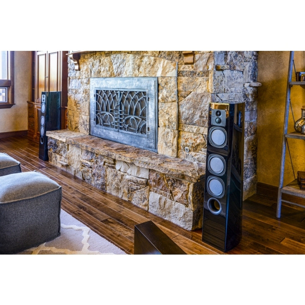 The PhaseTech PC9.5 is the flagship of the Premier Collection—a handcrafted, four-way floor-standing speaker that delivers breathtaking detail and imaging from 28 Hz to 22 kHz. Its three patented 6.5″ tri-laminate Kevlar/RPF®/glass-fiber woofers, 1.5″ soft-dome midrange and 1″ soft-dome tweeter are crossed with Absolute Phase® networks to create a seamlessly integrated soundstage.