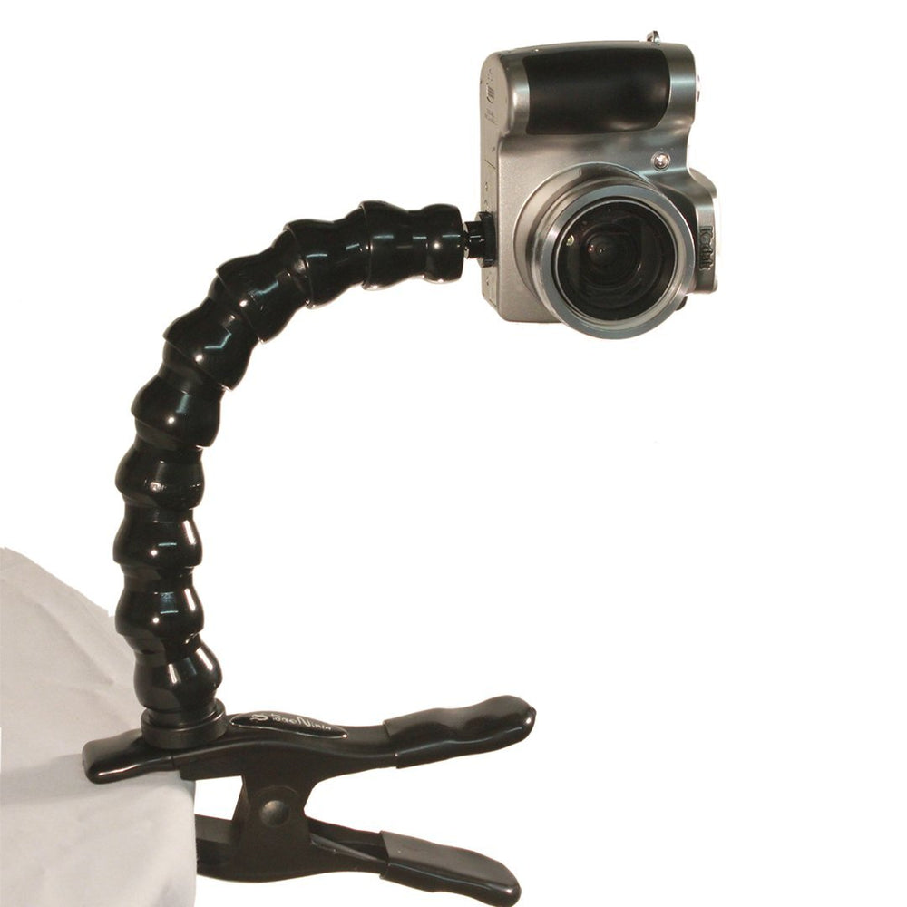 Clamp your action or other camera anywhere! Each clamp comes outfitted with a pivoting 1/4"-20 thread that is easily tightened with an oversized nut on the opposite side or can be removed to utilize the GoPro style cleat. Eight inches of heavy duty scorpion flex stays where you position it. The industrial steel, tension-loaded 6" clamp base with dual step, anti-mar jaws opens to just over 2". Not only does the CAM-12-CB clamp to objects, it also works as an excellent stand on ANY flat surface! Stage, field or studio, the CAM-12-CB will not let you down.