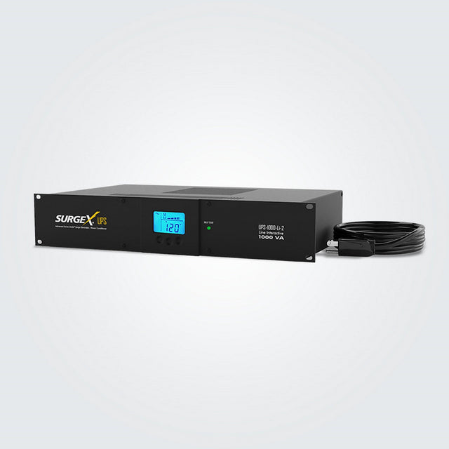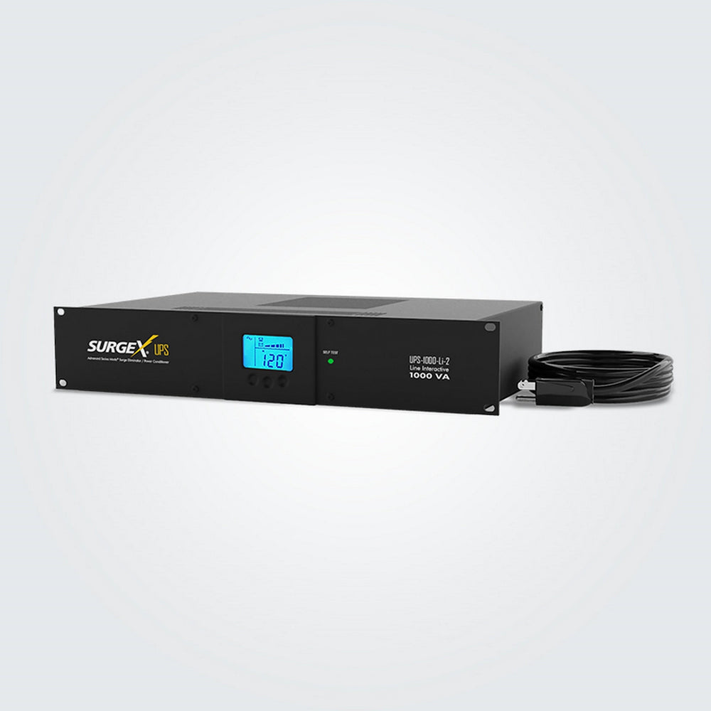The SurgeX UPS-1000-Li-2 is a line interactive uninterruptible power supply designed to provide reliable battery backup, surge elimination, and advanced power conditioning for critical electronic systems. With fast response time and automatic voltage regulation, it ensures a stable AC power source while minimizing battery use. The included analytical software enables technicians to manage power settings, monitor multiple units, and schedule automated shutdowns and restarts remotely.