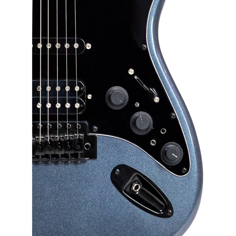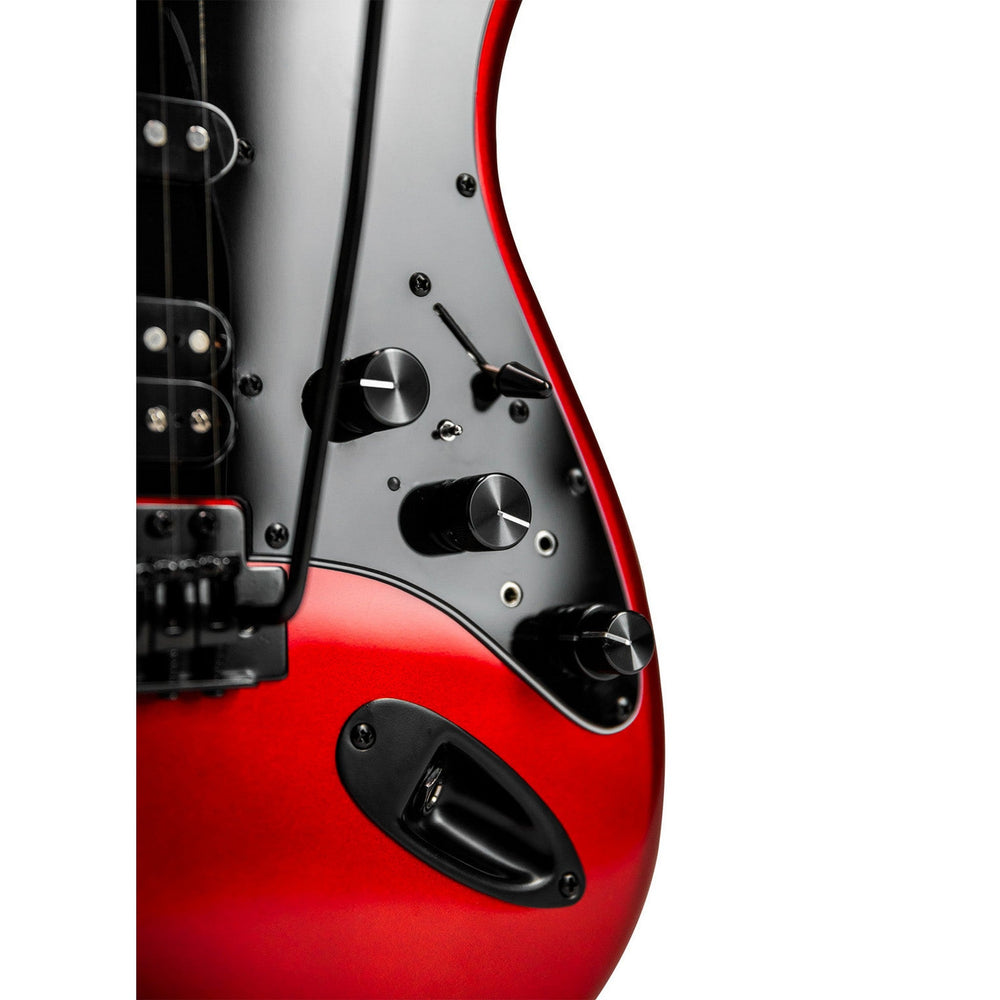 Crafted from a basswood body and complemented by a maple neck with a C-shape profile, the Sixmart ensures excellent playability and durability. The 22-fret techwood fingerboard features a 25.5" scale length and a 9.5" radius, making it comfortable for intricate fingerwork. Additionally, the black pickguard enhances the guitar's visual appeal, available in eye-catching Metallic Deep Silver or Sparkling Candy Apple finishes.