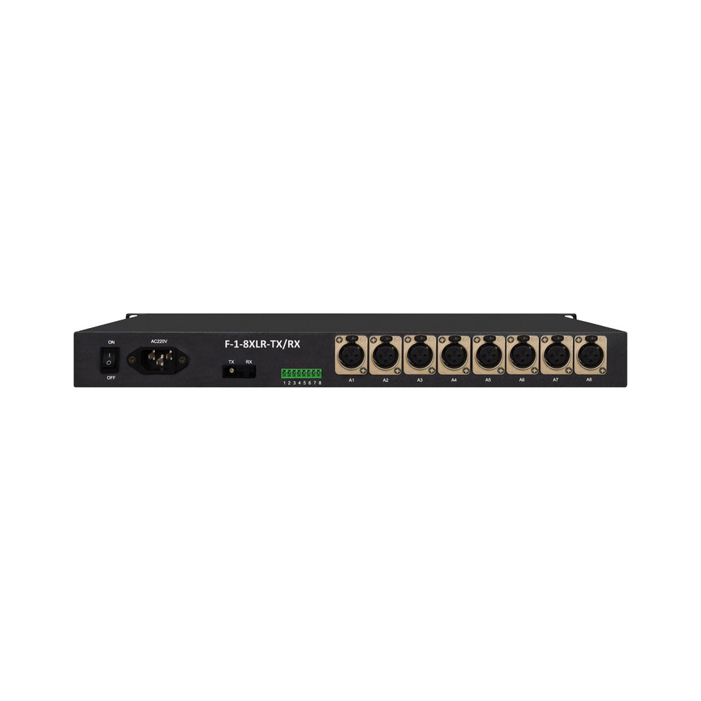 The Thor Fiber F-1-8XLR-HIFI-TXRX is a HIFI professional audio optical transceiver with 3-PIN XLR interface, performs high-quality 1~8-ch HIFI audio transmission over an optical line. Fiber Optic Transmitter High Quality audio signals are converted to digital signals and then converted to optical signals for transmission. Fiver Optic Receiver does the photoelectric conversion from modulated light signal to the analog XLR signal output. Used for professional and extremely high quality audio transmission over the fiber.