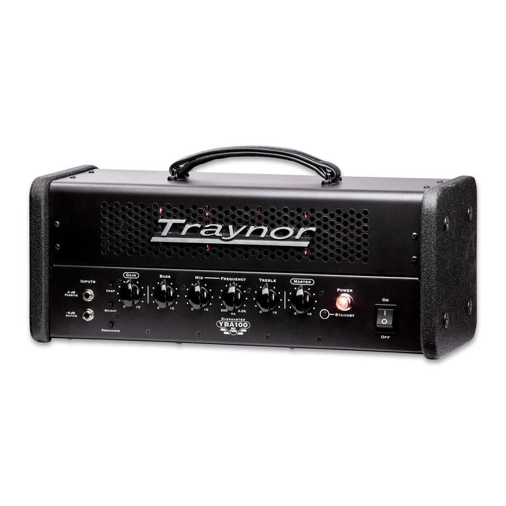 The all-tube Traynor YBA100 100-watt bass head has been designed to be the ultimate tube head for the working musician. LED indicators on the rear of the amp show proper tube function and status. In rare cases where a tube may fail, the YBA100 will lock out the problem tube and its partner, allowing the amp to finish the show on the remaining active tubes.
