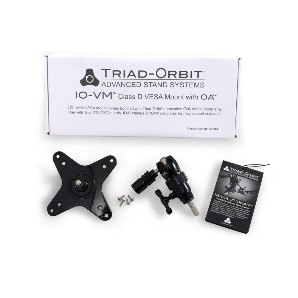 - Io-VM VESA mounts comes bundled with Triad-Orbit's innovative OA orbit boom arm