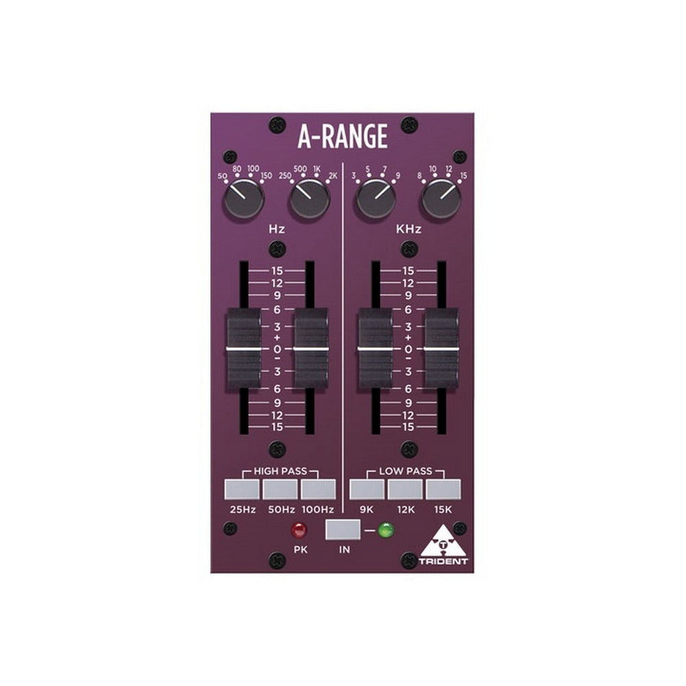 The legendary A-Range equalizer holds a unique place in audio history, with a stunningly musical sound that resulted from its all-discrete transistor circuitry and the use of inductors in the upper and lower mid bands. The A-Range is a faithful re-creation of the original four band Trident A-Range equalizer in a 500 module format, that will add the unique Trident signature to any programme material.