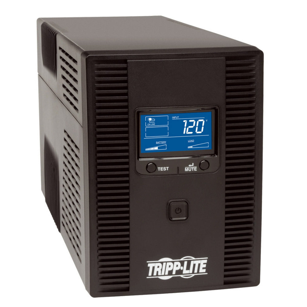 Tripp Lite's OMNI1500LCDT Line-Interactive Tower UPS System offers voltage regulation, surge suppression and long-lasting battery support for personal computers, network workstations, home entertainment systems and media centers. Internal UPS circuits support entry-level PCs or individual VCR/DVR components during power failures. Prevents data loss, viewing interruptions, lost recordings and loss of component programming. Automatic Voltage Regulation (AVR) circuits continuously regulate brownouts and overvoltages from 92V to 150V back to usable levels, all while maintaining a full battery charge. Offers complete power protection in an attractive all-black cabinet design. Includes 10 built-in outlets, 5 with full battery backup and surge suppression for vital system components and another 5 with surge-suppression only for accessories not requiring battery support. Built-in USB port and included cable enables optional unattended system shutdown without data loss in case of extended power failure. PowerAlert software is available via free download from www.tripplite.com. HID-compliant USB interface also enables integration with built-in power management and auto shutdown features of Windows and Mac OS X. Built-in surge dataline surge suppression jacks protect equipment with single-line dialup/DSL or network Ethernet connection. Built-in audible alarm and large LCD front panel display offers easy to read icon-based status indicators and detailed numeric data regarding input voltage, output voltage, frequency, load percentage, load watts, battery voltage and runtime in minutes. 1500VA/810W power-handling capacity supports entry-level PCs, home entertainment systems, network workstations and audio/video components.