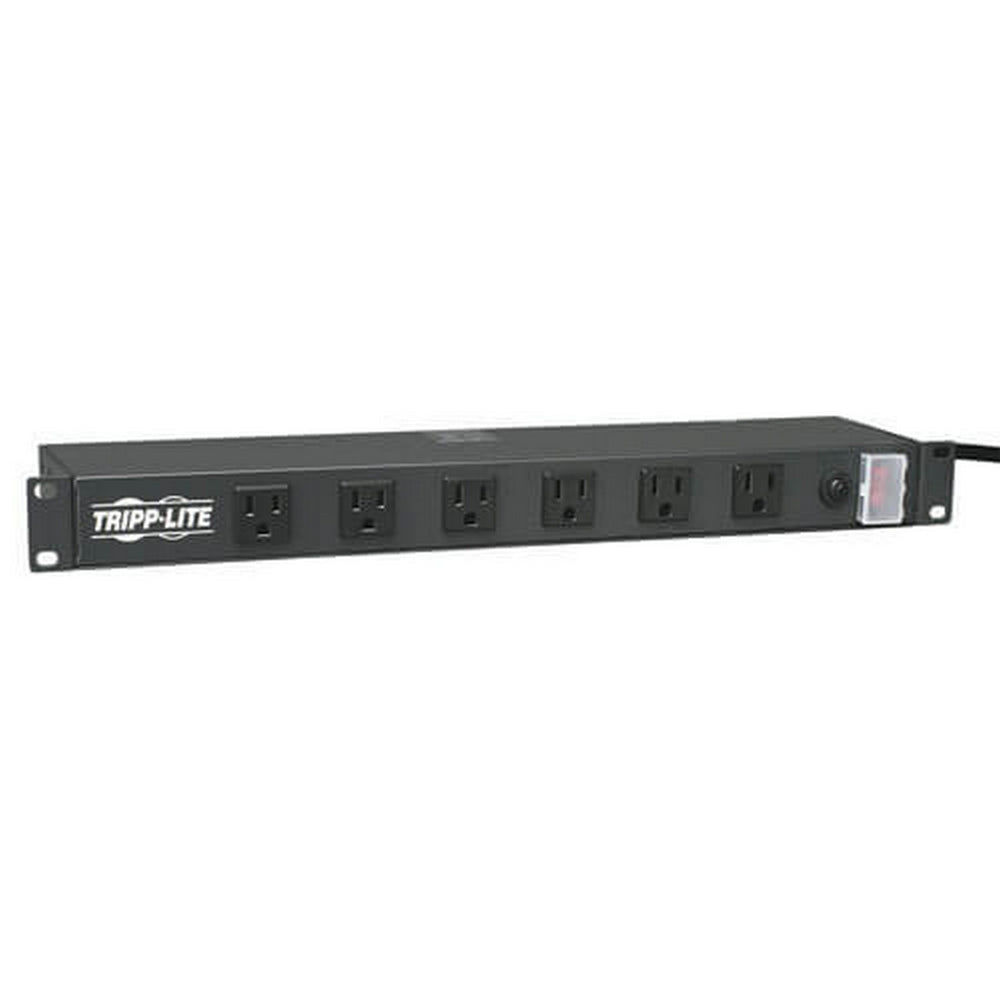 Tripp Lite's RS-1215-RA Power Strip offers 15A capacity AC power distribution in a versatile multi-mount cabinet. Detachable mounting flanges are configurable for rackmount, wallmount and under-counter installation. Uses only 1 rack space (1U) when installed in any 19-in. rack meeting EIA standards. Unfiltered electrical pass-through makes RS-1215-RA ideal for distributing alternate waveform UPS or generator power in rack enclosures, network closets and more. Features 12 NEMA5-15R outlets (6 front/6 rear) placed at a right angle (with ground pin at bottom), 15-ft. AC power cord and lighted power switch with cover that prevents risk of accidental turn-off.