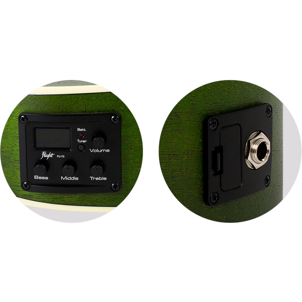 The Flight DUC380 CEQ also boasts thoughtful features designed to make your life as a musician easier. The built-in Flight FU-T3 pickup system with preamp and tuner eliminates the need for separate tuners and external amps, streamlining your setup process and ensuring you're always in tune. A built-in strap button lets you add a strap for comfortable hands-free playing, ideal for extended practice sessions or energetic performances. High-quality geared tuners keep your ukulele in perfect pitch, while the included Flight gig bag offers excellent protection during transport, ensuring your prized instrument arrives safely wherever you take it. The Flight DUC380 CEQ Jade Electro-Acoustic Concert Ukulele is more than just an instrument; it's a companion on your musical journey. Order yours today and embark on a world of musical exploration!