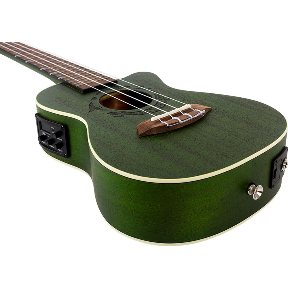 - Stunning combination of beauty and functionality, with a captivating jade green laminate mahogany body that produces a warm, rich sound suitable for any musical genre.