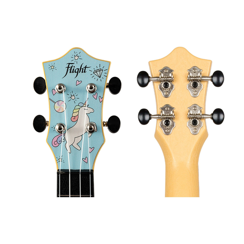 - The Flight TUS-40 Unicorn Soprano Travel Ukulele is a unique blend of captivating design and exceptional playability, adorned with a mesmerizing rainbow and unicorn motif.
