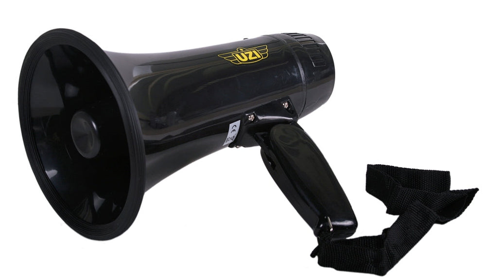 The UZI-MP-204R 15-Watt Megaphone with Siren features adjustable volume and recording/playback. Other features include a built-in microphone, foldable handle, LED light indicator and a wrist strap. This unit uses (4) C batteries. UZI combines advanced technical concepts with innovative designs to produce products used and trusted by the Army, Secret Service and Special Forces. Since its launch in the 1950s, UZI has become one of the world's most famous firearm brands and a 20th century icon.