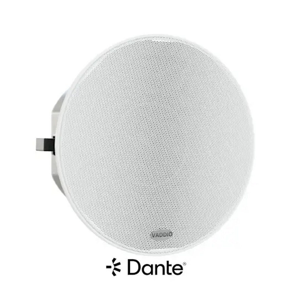 The Vaddio EasyIP Ceiling Speaker D is a high-performance, Dante-enabled 2-way speaker designed for seamless integration into modern AV environments. Engineered for superior vocal clarity, it features a coaxially mounted cone tweeter and a 4" metalized cone woofer with rare-earth neodymium magnets and a neoprene driver surround, ensuring accurate voice reproduction in conference rooms and classrooms.