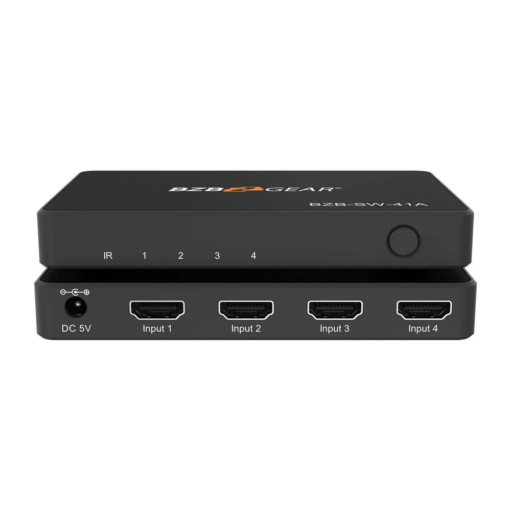 BZBGEAR BZB-SW-41A 4-Port 4K 18Gbps 60Hz HDMI 2.0 Switcher with IR Remote Control