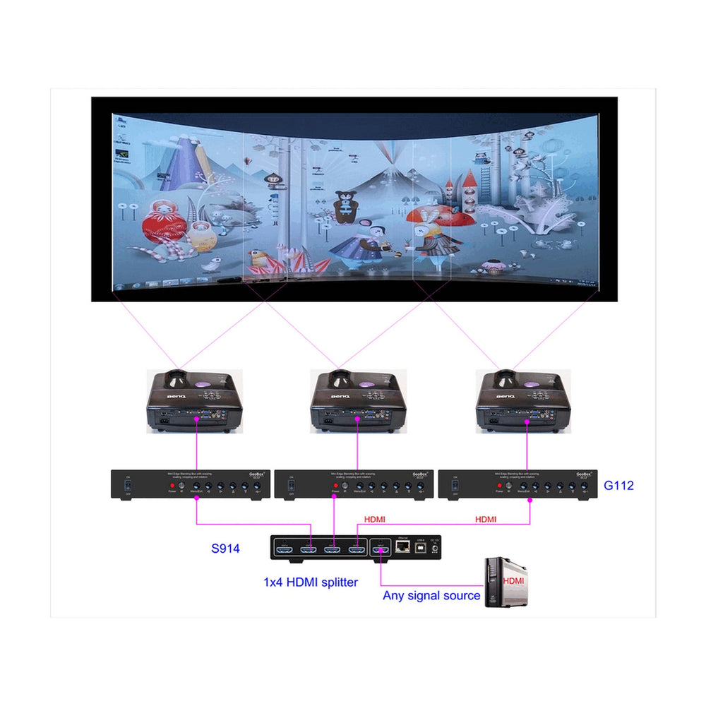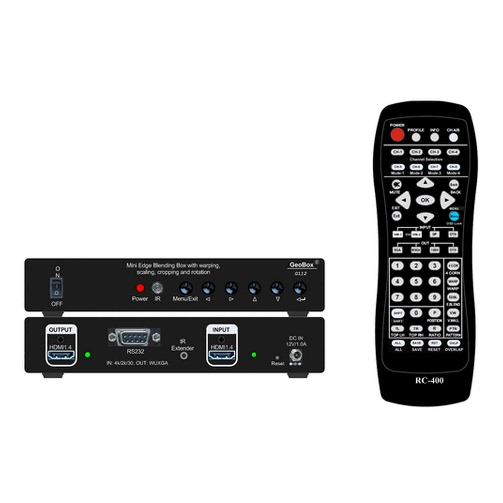 The GeoBox G112 is a high-performance video processor designed to handle complex geometry alignment, edge blending, and image warping with unparalleled precision. Featuring an HDMI 1.4 input and output, it supports resolutions up to 3840x2160 at 30Hz with 4:4:4 chroma sampling, ensuring crystal-clear image quality without compression. This device is ideal for applications requiring flexible aspect ratio control, edge blending across multiple screens, and precise image geometry adjustments.