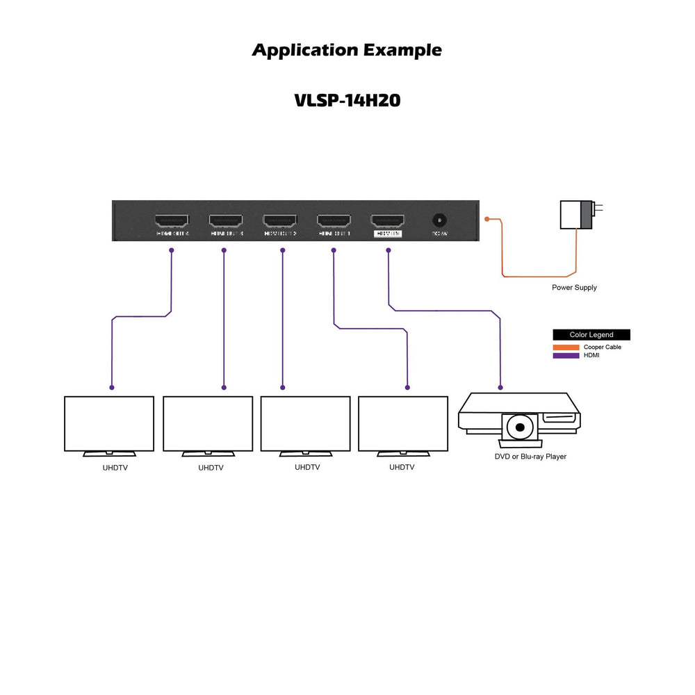 The compact and robust design features a metal chassis that can withstand daily use. Its sleek black finish ensures it blends effortlessly with your other AV equipment. With easy installation and high compatibility, the VigilLink 1x4 HDMI 2.0 Distribution Amplifier is a must-have for anyone needing to expand their HDMI connections while maintaining the highest standards of video quality.