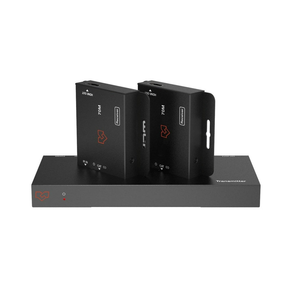 - Distributes one HDMI source to two HDMI displays via CAT cable extension