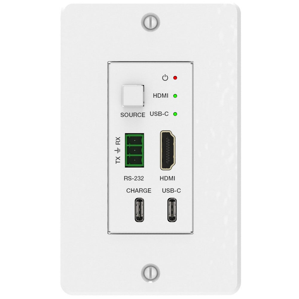 The VLWP-UHS-TR HDMI & USB-C Extender Kit is the perfect solution for extending both HDMI and USB-C signals over long distances without compromising on video and audio quality. Designed for both commercial and residential applications, it enables the transmission of high-definition video and audio up to 230 feet (70 meters) for 1080p signals and up to 131 feet (40 meters) for 4K UHD signals over a single Cat6/6a/7 cable. With support for advanced HDR formats like Dolby Vision and HDR10, as well as a wide range of color depths and video resolutions, this extender ensures that your displays deliver superior image quality. Whether you're setting up a conference room, home theater, or digital signage, the VLWP-UHS-TR provides an efficient and reliable signal distribution solution. This extender kit includes both a transmitter and receiver with versatile input options such as HDMI, USB-C, and RS-232 for enhanced flexibility. The kit also supports PoE (Power over Ethernet), allowing for a streamlined installation that eliminates the need for separate power cables. The metal enclosures of the wall plate and receiver ensure durability while providing optimal heat dissipation for reliable performance in various environments. Available in white or black, the sleek design is perfect for installations where aesthetics matter as much as functionality. Whether you are distributing video signals across a large room or extending a display to another location, the VLWP-UHS-TR HDMI & USB-C Extender Kit provides high-quality, long-distance signal transmission with seamless performance.