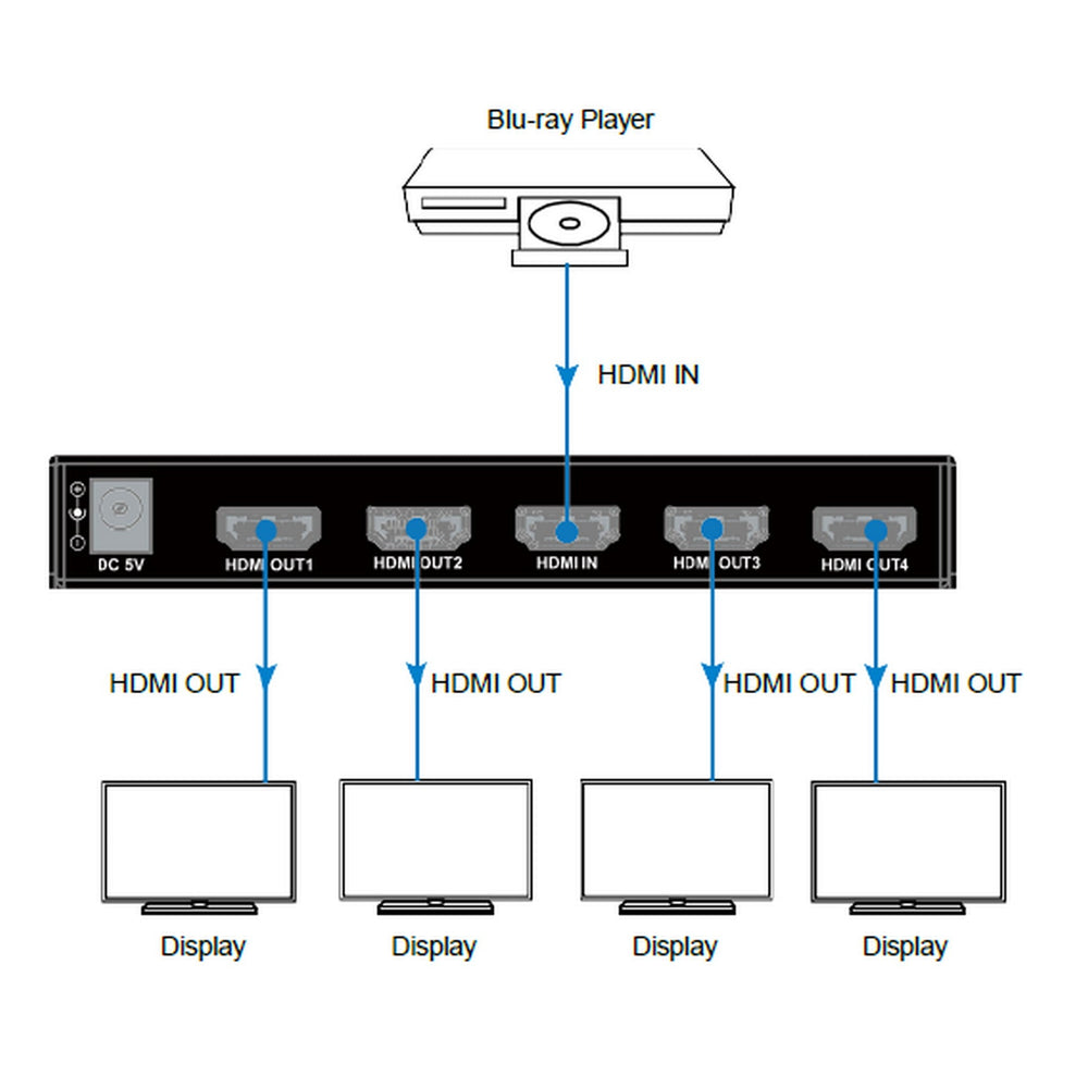 Featuring advanced scaling technology, the VLSP-14H20D optimizes output resolutions to match the connected display’s capabilities, ensuring optimal performance without compromising quality. The splitter supports resolutions up to 4096x2160@60Hz, including 4K@60Hz, 4K@30Hz, 1080p, 1080i, and 720p. With a maximum data rate of 18Gbps and a 600MHz pixel clock, it guarantees ultra-smooth video transmission with no lag or degradation.