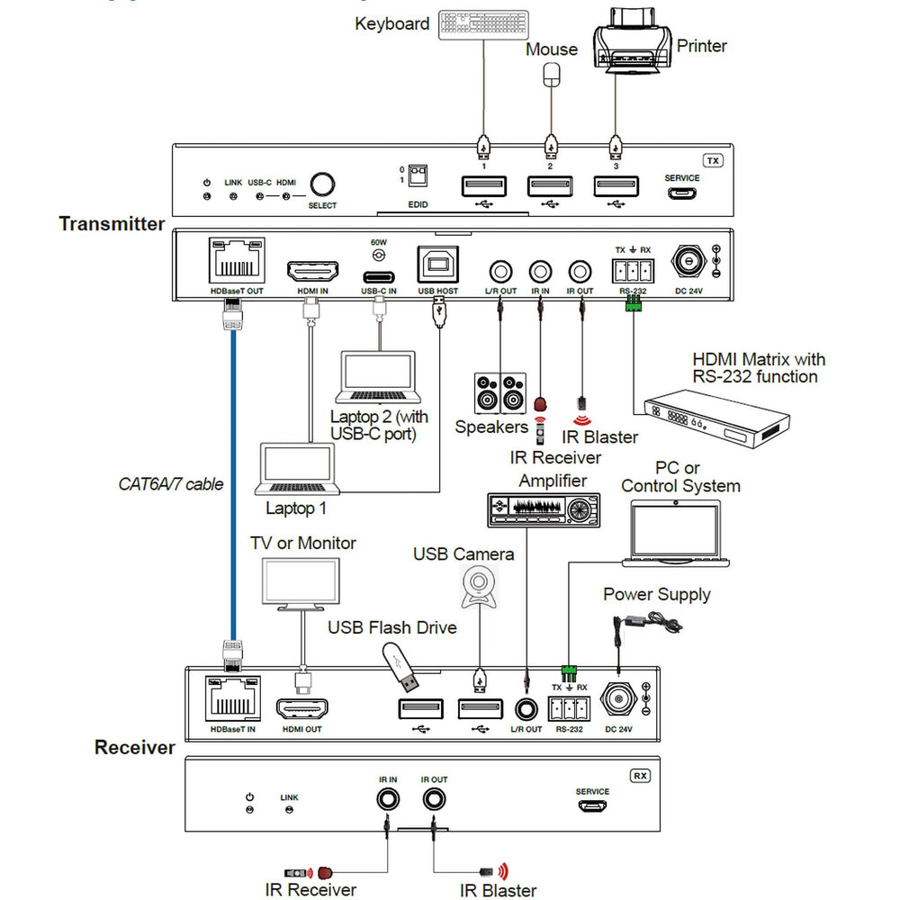 HDBT Standard Mode: **4K60 / 328ft (100m), 1080p / 328ft (100m)** (CAT6A/7 cable)