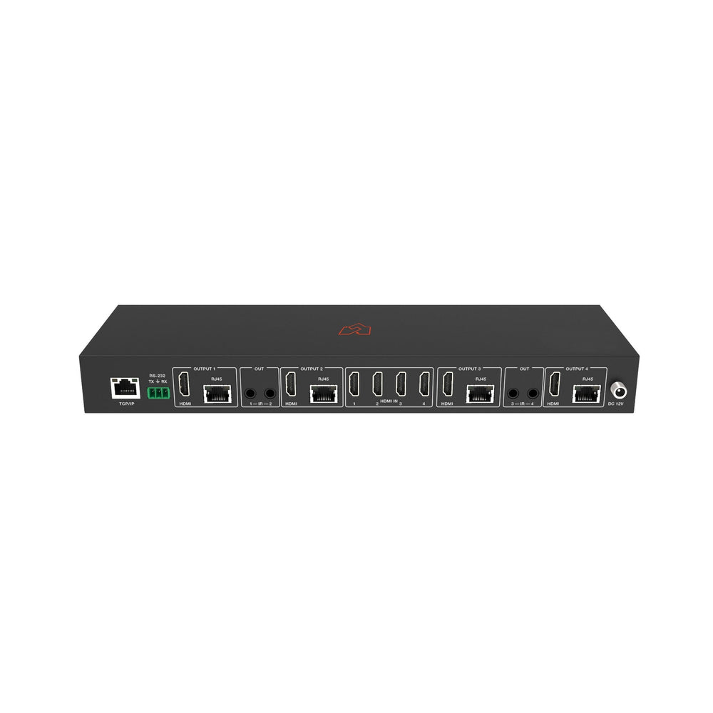 - Provides multiple control options: front panel buttons, IR remote, RS-232, LAN, and Web GUI.