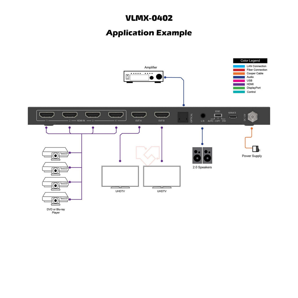 VLMX-0402 HDMI 4x2 Matrix Switch with 4K HDR Support