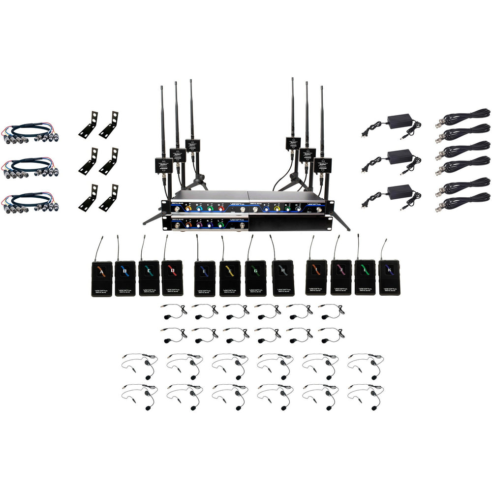 VocoPro BOOST-PLAY-12 Long-Range 12-Channel Digital Wireless Headset/Lavalier Microphone System, 900 MHz with Up to 600ft Range and Expandable Configurations