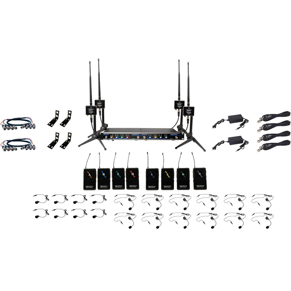 VocoPro BOOST-PLAY-8 Long-Range 8-Channel Digital Wireless Headset/Lavalier Microphone System, 902-927.2 MHz