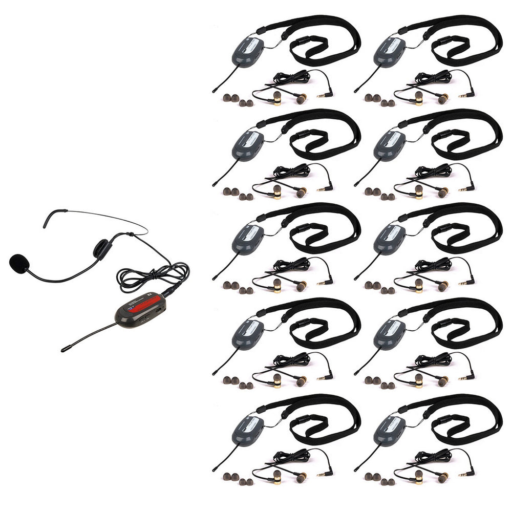 VocoPro Commander-TOUR-10-3 10 User Digital UHF Tour Guide System with Transmitter Headset Microphone and 10 Receivers