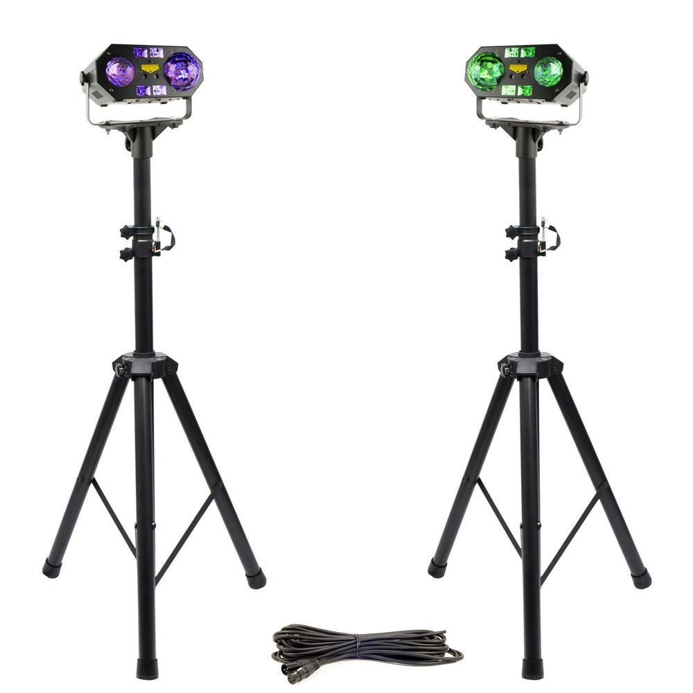VocoPro DYNAMIC-DUO All-In-One Dual Rave Light Package: 5-in-1 Multi-Effect Lights with Stands