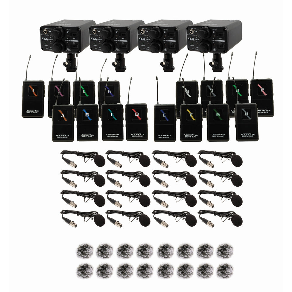 VocoPro FIELD-QUAD-FILM-16B Portable Sixteen Lavalier Field/Camera-Mountable Wireless Microphone System, 902-927.2 MHz