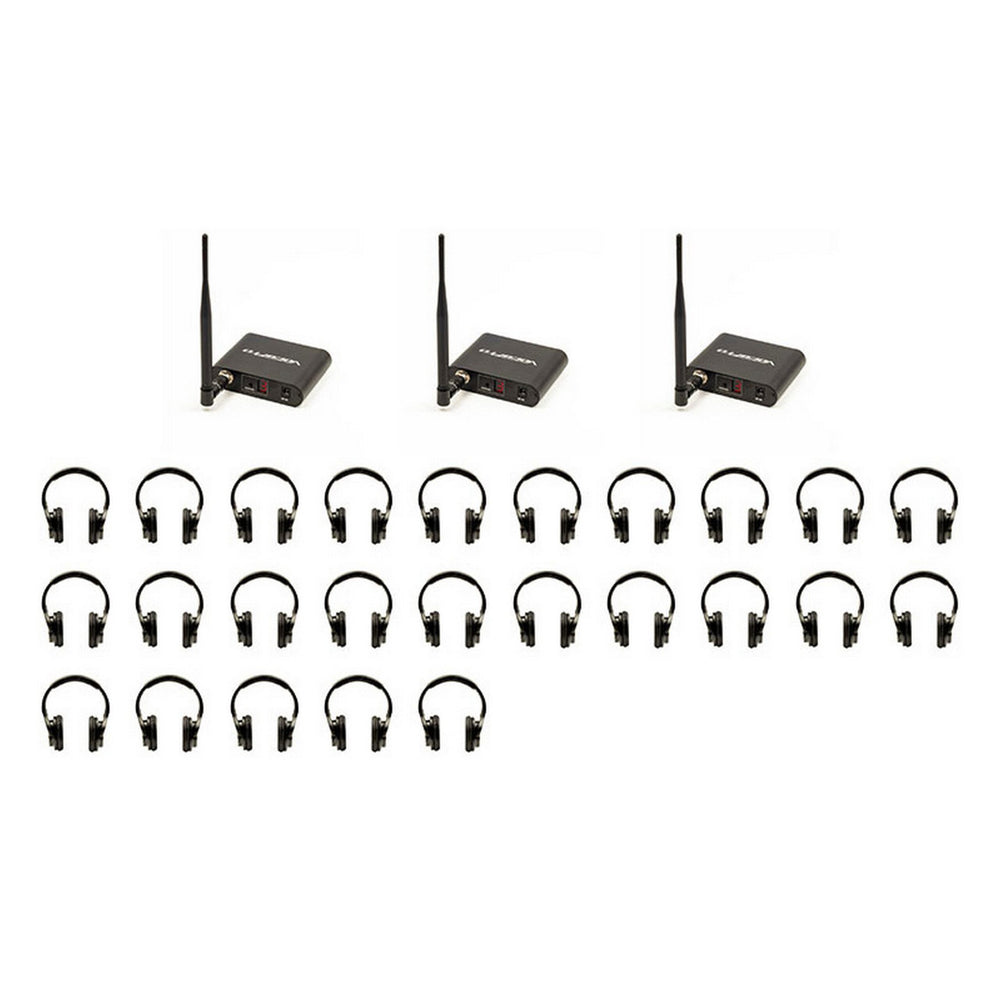 VocoPro Silent Disco 325 Package with 3 Transmitters and 25 Wireless LED Headphones
