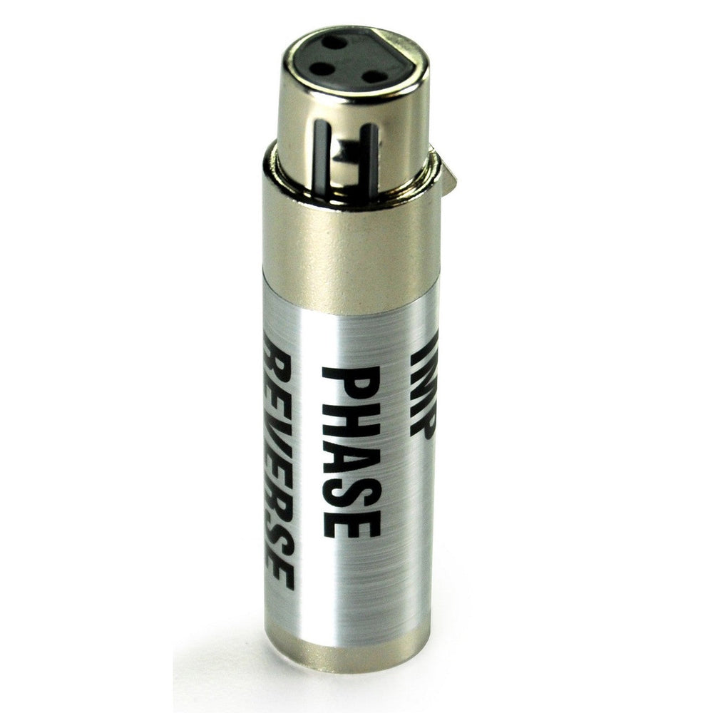 The phase reverse offers a temporary solution to fix a miswired mic or cable. This female-to-male XLR 3-pin inline device reverses the connection of Pins 2 and 3 between the connectors, which flips the polarity of a balanced audio signal.