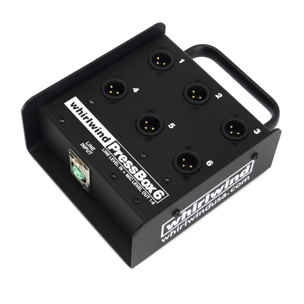 These passive units distribute one line level input to multiple mic level outputs*. Each output is transformer isolated, provides excellent interchannel isolation and is ground lifted to help eliminate noise problems. Whirlwind TRSP-2F transformers are used throughout.