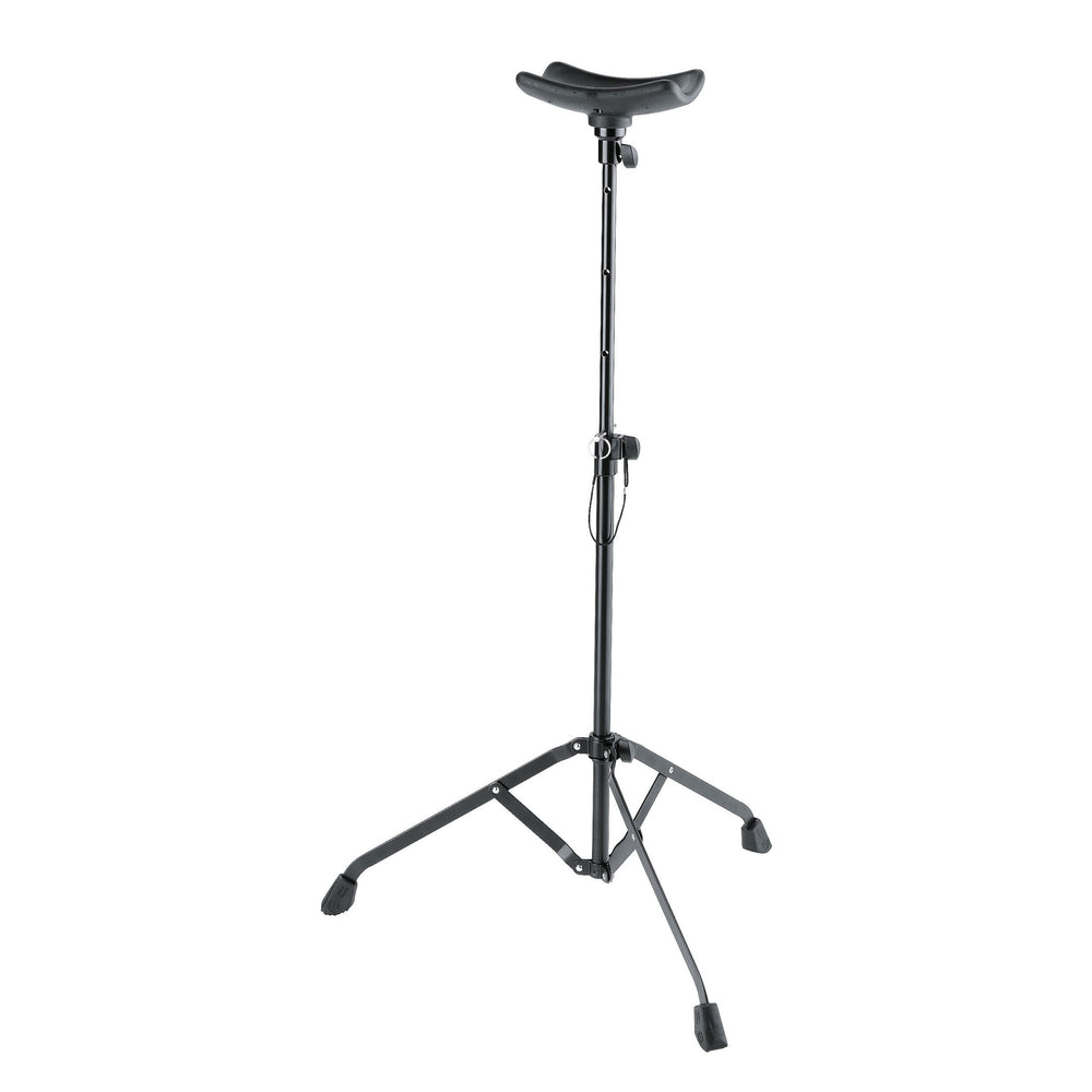 For all tuba models. Wide base construction. Easy to set up and fold. Non-marring height-adjustment mechanism. Instrument support rubber coated.