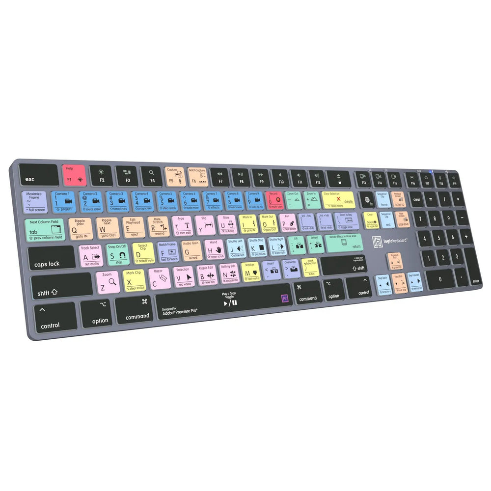 The Logickeyboard Titan Wireless Backlit Shortcut Mac Keyboard for Adobe Premiere Pro CC stands out as the top choice for editing in Premiere Pro. With labeled shortcut commands and color-coded definitions on the keys, mastering control of Premiere Pro becomes effortless. Ideal for post-production facilities, professional editing houses, and anyone working with Premiere Pro.