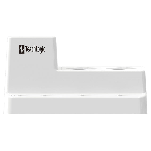 - Indicator LEDs: Power and charging status visible via LEDs (one for power; three for respective wells).