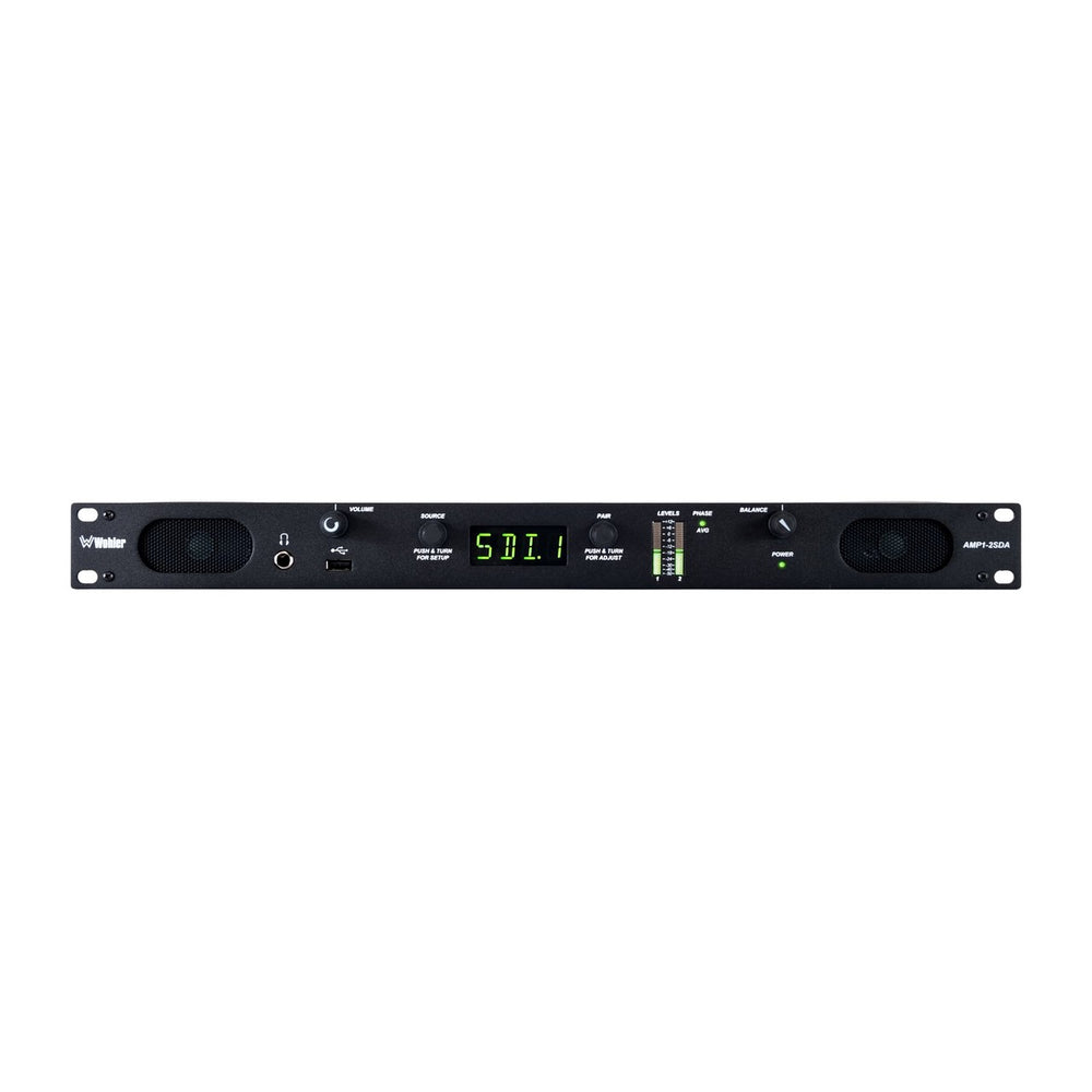 With Wohler's renowned high-quality audio, the AMP1-2SDA provides instantaneous selection and monitoring of any available pair of audio from either a 16 channel SDI, 2 channel AES or 2 channel Analog source.