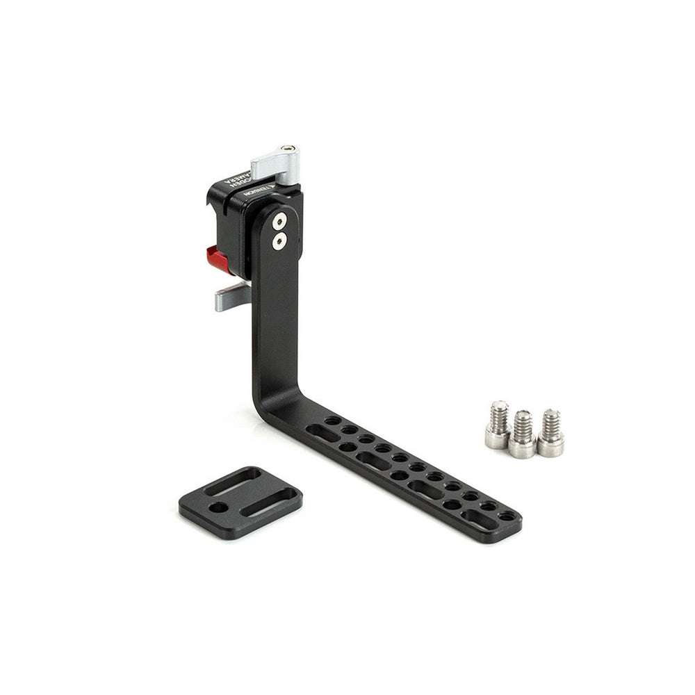 The UVF LCD Sled attaches larger LCD monitors to the UVF Mount v2 or any NATO standard rail. A row of threaded holes allows attachment of the RED Touchscreen and other similar devices. The pass through holes and slots accommodate monitors with 1/4-20 holes on top or bottom. A small spacer piece is included for the LCDs with video connection points and controls on the bottom.