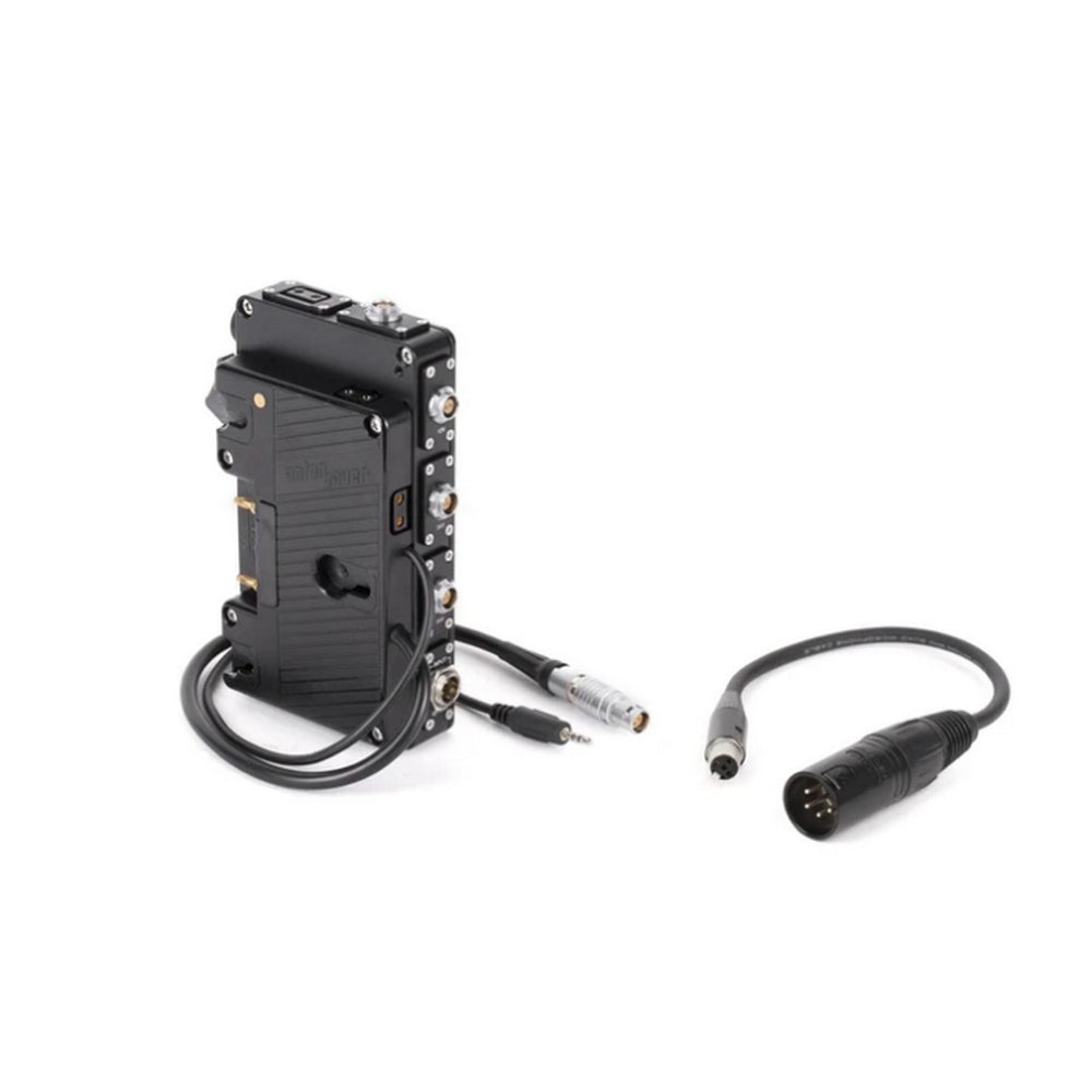 D-Box (Canon C200, C200B, C300mkII, Gold Mount) is a custom version of our popular D-Box that adds power distribution, standardized remote start/stop, and hot swap abilities for the Canon C200, C200B, and C300mkII. Allows for up to 5 simultaneous outputs with a maximum draw of 3A per output (24V outputs 3A max combined) and 10A total draw limited by an easily accessible fuse. Two 12 inch (30cm) cables exit the power plate with one going to the 4pin LEMO compatible power plug and the other going to the Remote port. There is a LANC control board inside the D-Box that communicates with the camera so that any ARRI standard start/stop can be used in the 3pin Fischer ports.