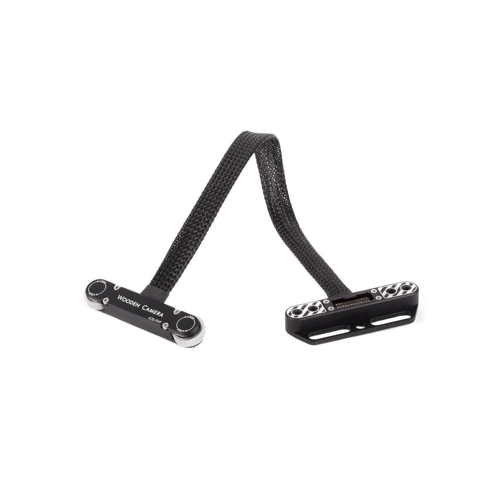 RED Male Pogo to Female Pogo LCD/EVF Cable (12") is a cable that allows the RED displays to be moved off the top of the RED Weapon/Scarlet-W/Raven and into a position more easily viewed. The male pogo connector attaches to the camera body without tools and the female pogo connector has a slotted design that can be bolted to any two 1/4-20 screws holes up to 54mm apart, center to center. 1/4-20 threaded holes are also found on the bottom of the female pogo connector for attaching to WC Magic Arms. The braided, flexible cable makes positioning easy and is great for gimbal use.