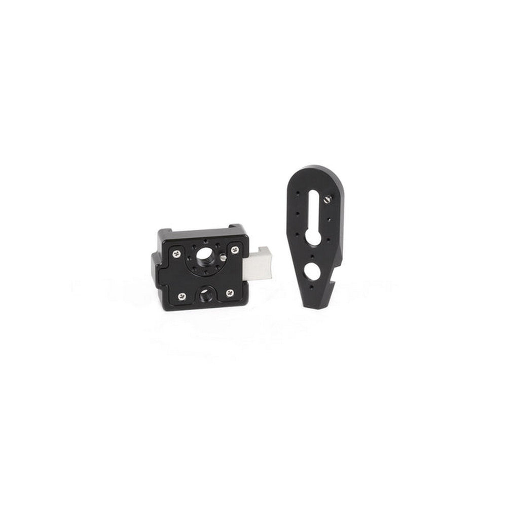 This V‑Lock quick-release kit enables offset mounting for accessory positioning. The base station installs via either ¼‑20 or 3/8‑16 threaded holes, with added anti-twist support. The wedge slides securely into standard ARRI-style accessory mounts (3/8‑16), creating a fast and balanced attachment point.