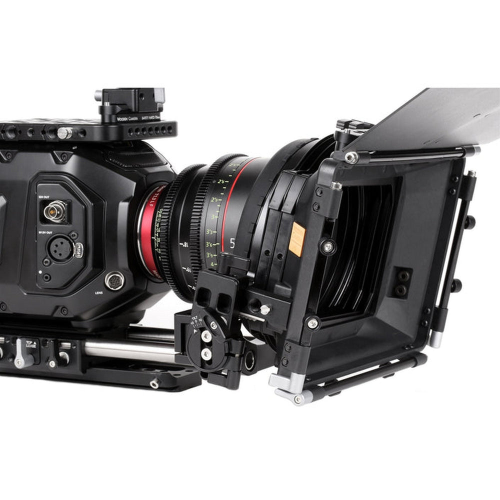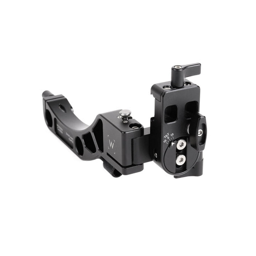 This accessory converts the Base and Clamp‑On versions of the Wooden Camera UMB‑1 Universal Mattebox into a Swing‑Away design, adding the ability to tilt the mattebox up or down by 10° to counteract filter reflections.
